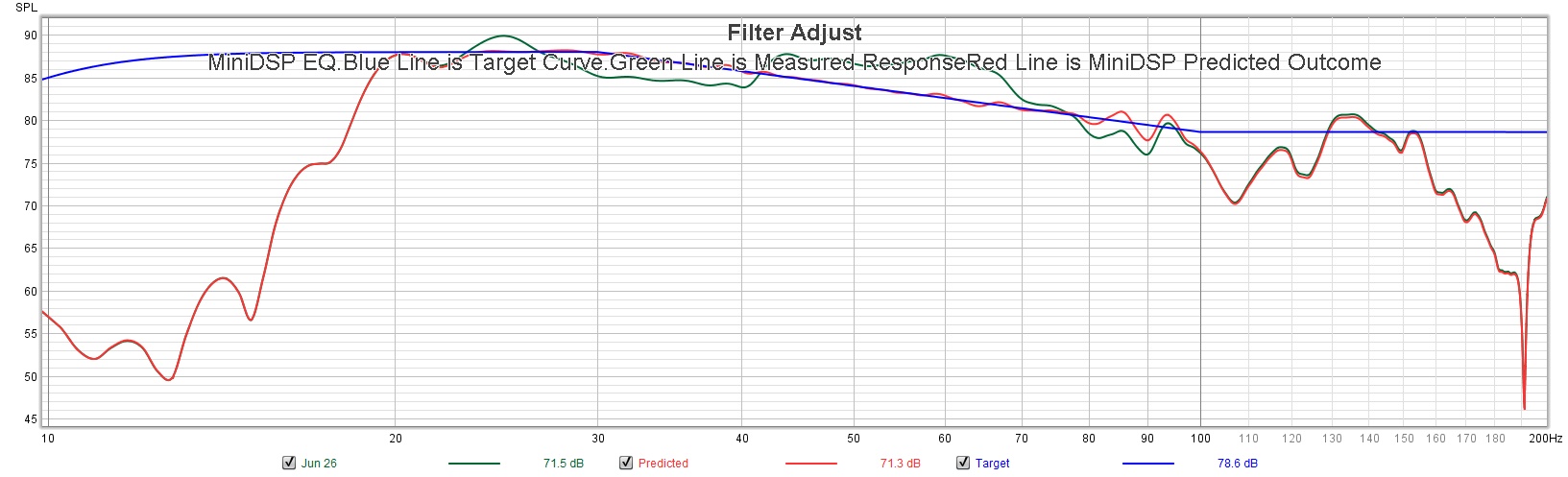 While the weather is nice and the daylight hours are long, I will not spend much time on getting the new sub integrated into the system. Thankfully, I did keep my old measurements when I went through this exercise looking for the best location for the current sub.