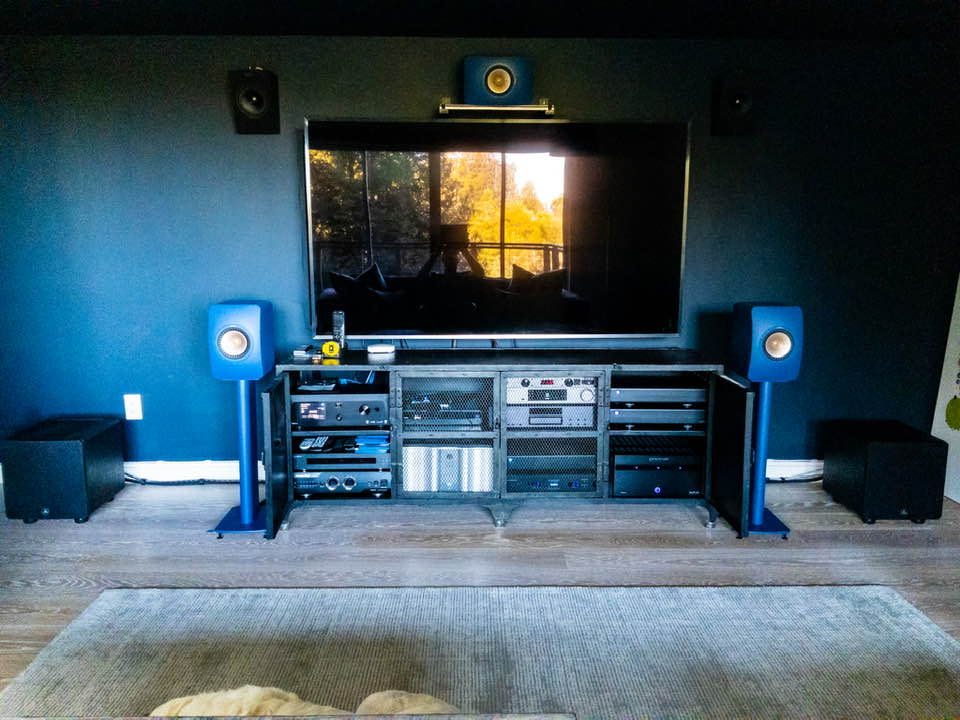 The equipment cabinet is below the 75" display. The KEF LS50 Meta's you see here will be replaced with the Focal's this week..