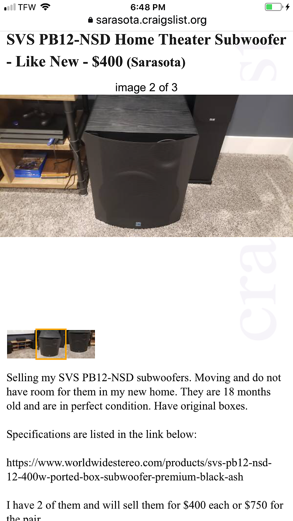 that guy (tries to) sell a lot here locally... most of his stuff is overpriced(you've probably figured this out by now).. those speakers have 3 or 4 in. drivers btw.. guys a c'list "retailer" .. in my experience , that's not a great thing in general...