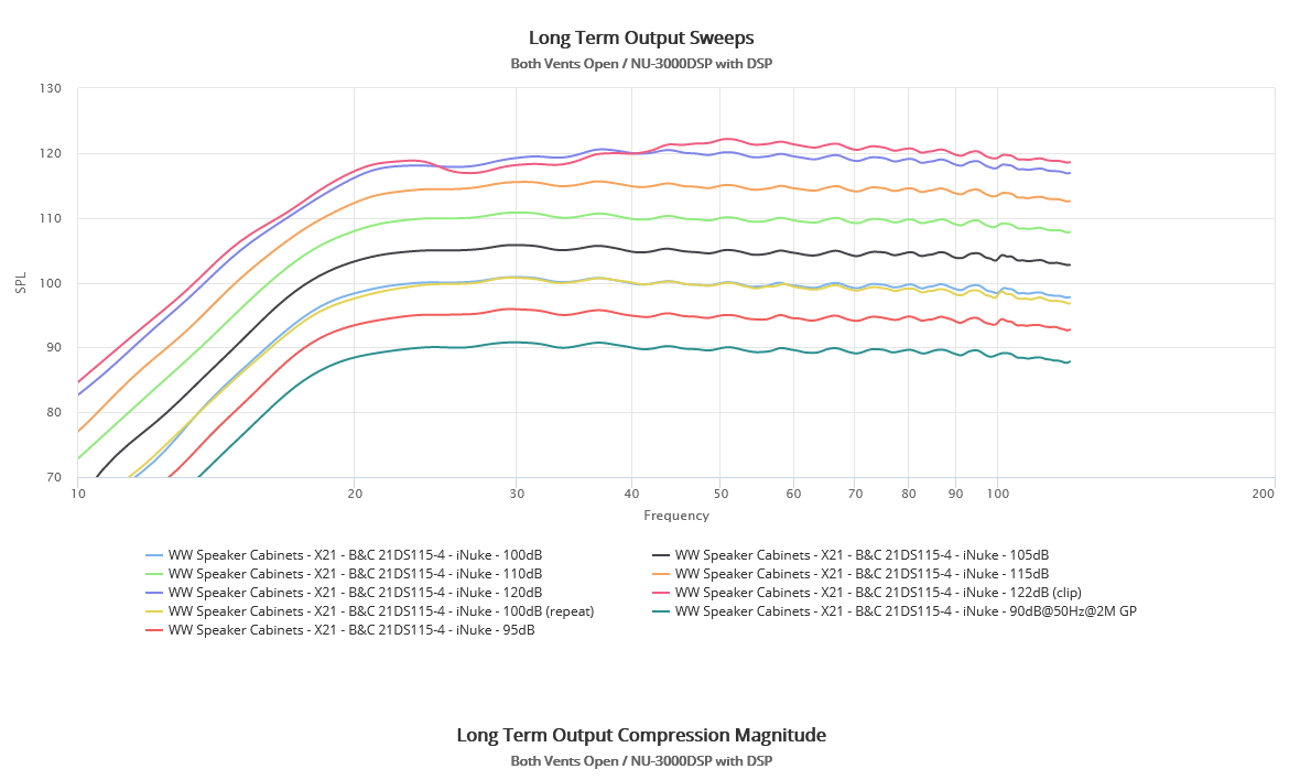The bandwidth of the sub kind of shocked us. The vast majority of the subs we test are finished products and have fixed low pass filters even with an LFE input. At some point, say 200hz, the bass rolls off. On top of that, most high output subwoofers have high inductance and naturally roll-off and break up by 200-500hz. This crazy little driver operated cleanly into the midrange such that you could use it easily in a 3-way and even 2-way speaker. Any tweeter that could be crossed over at 800hz or so could be used to turn this into a 2-way speaker. That's kind of bonkers for a high excursion subwoofer driver. The Peerless and Dayton subs can do this too, but none of them have as much xmax or high power handling.