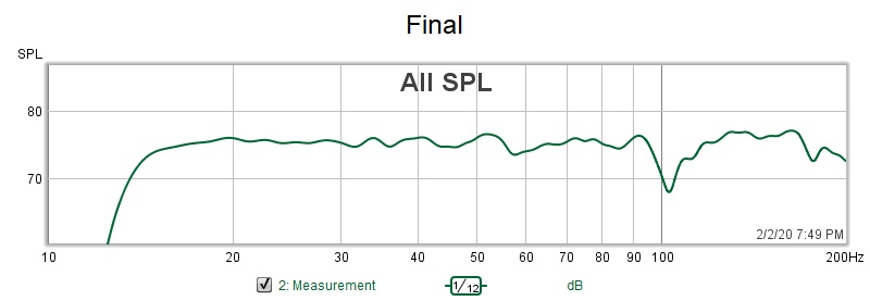 The reason I asked to see all those curves for 40,60,80,90,100 Hz is to satisfy my curiosity/am obsessed.. (sorry for being selfish!) about whether Audyssey would make the comb filter effects worse. From your graphs, as well as my, if would appear Audyssey did improve the comb filter effects at any crossover setting, though it worked best for the higher settings such as 80, 90 and 100 Hz.