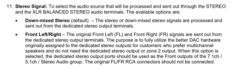 The front Left/Right channels can in the settings in the Oppo can be assigned to the front L/R output in 7.1 analog out but I prefer to leave them as default for when I play stereo CD disks and connect these to the CD input on the AVR.