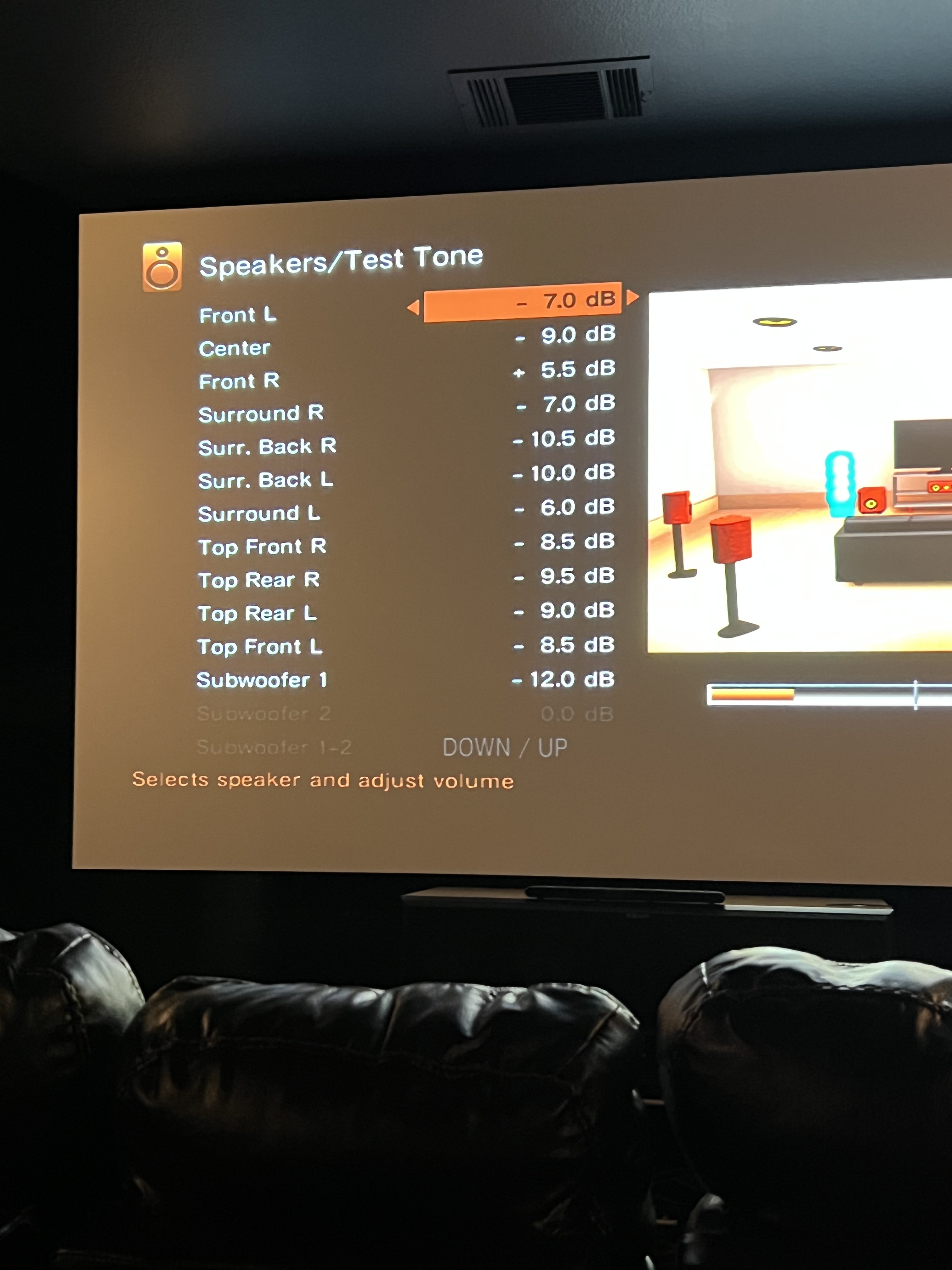 Below are some screenshots of my settings which includes the output setting I changed to try to match the left front speakers output.