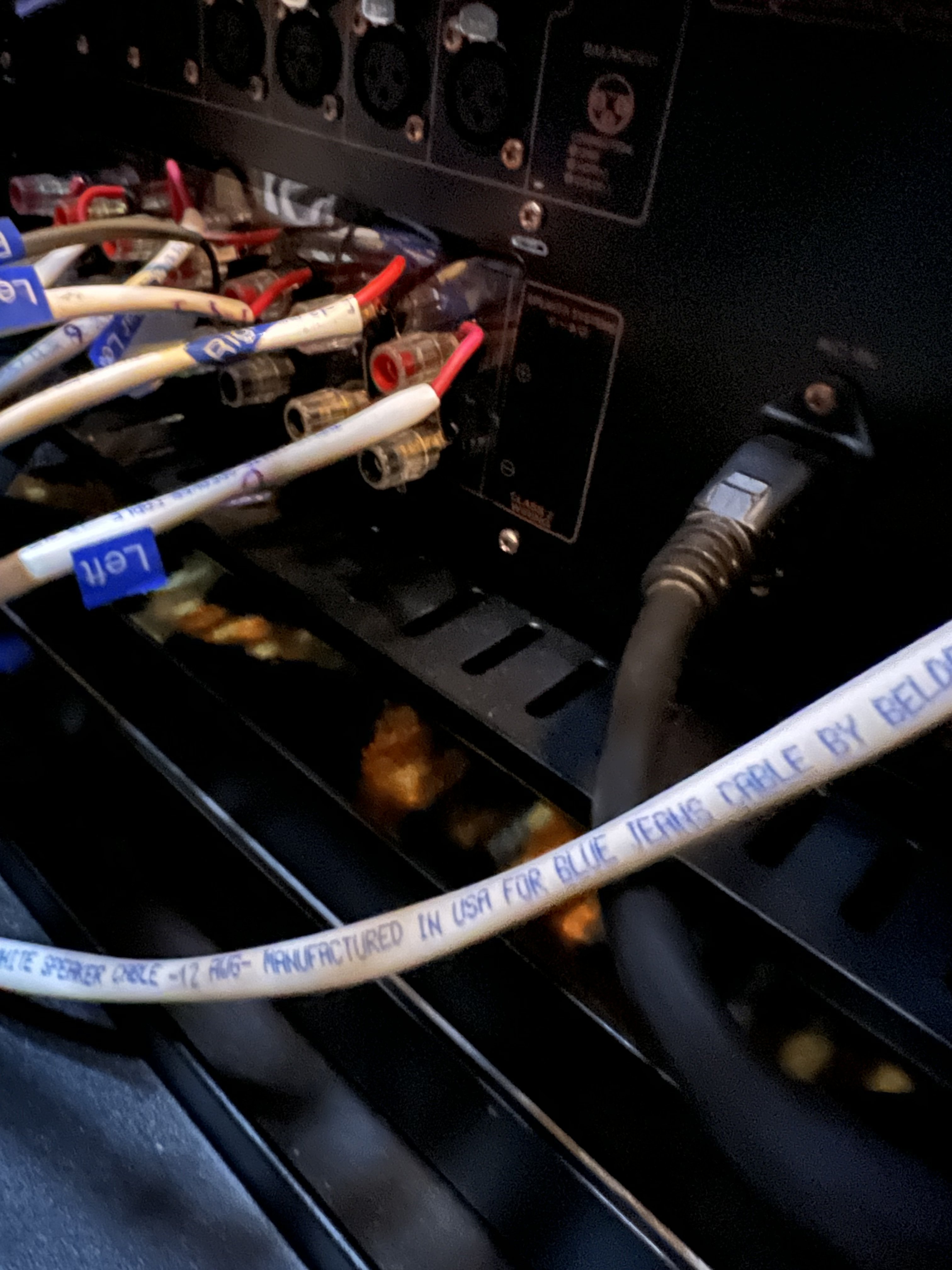 I am using Blue Jeans BJC Ten White 10AWG CL3 shielded in wall cables. I connected the raw cable to the binding posts. I am considering buying dual screw banana plugs.