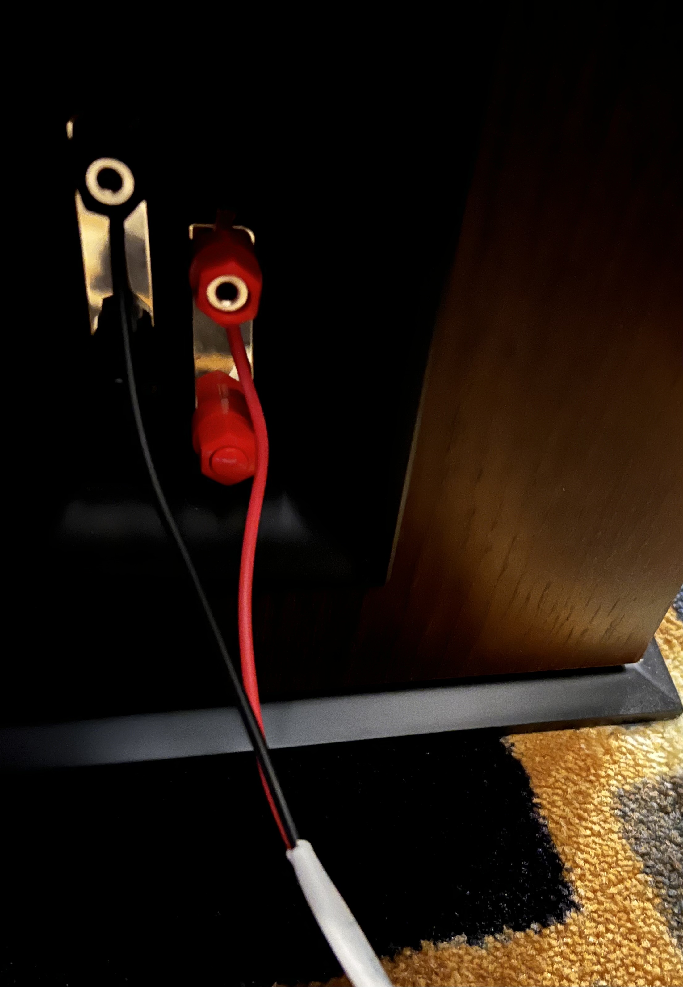 Here are pics of the cable hooked up to the speaker and also hooked up to the receiver.