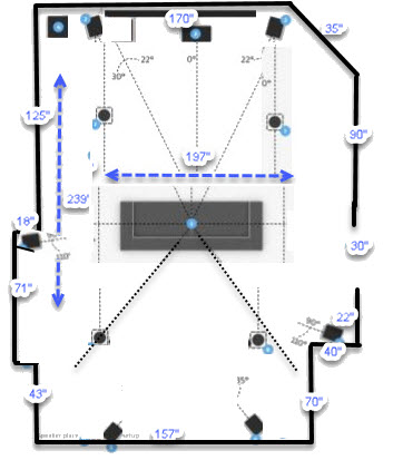 that would be 22˝ from the side wall and about 7 ft from the back wall.