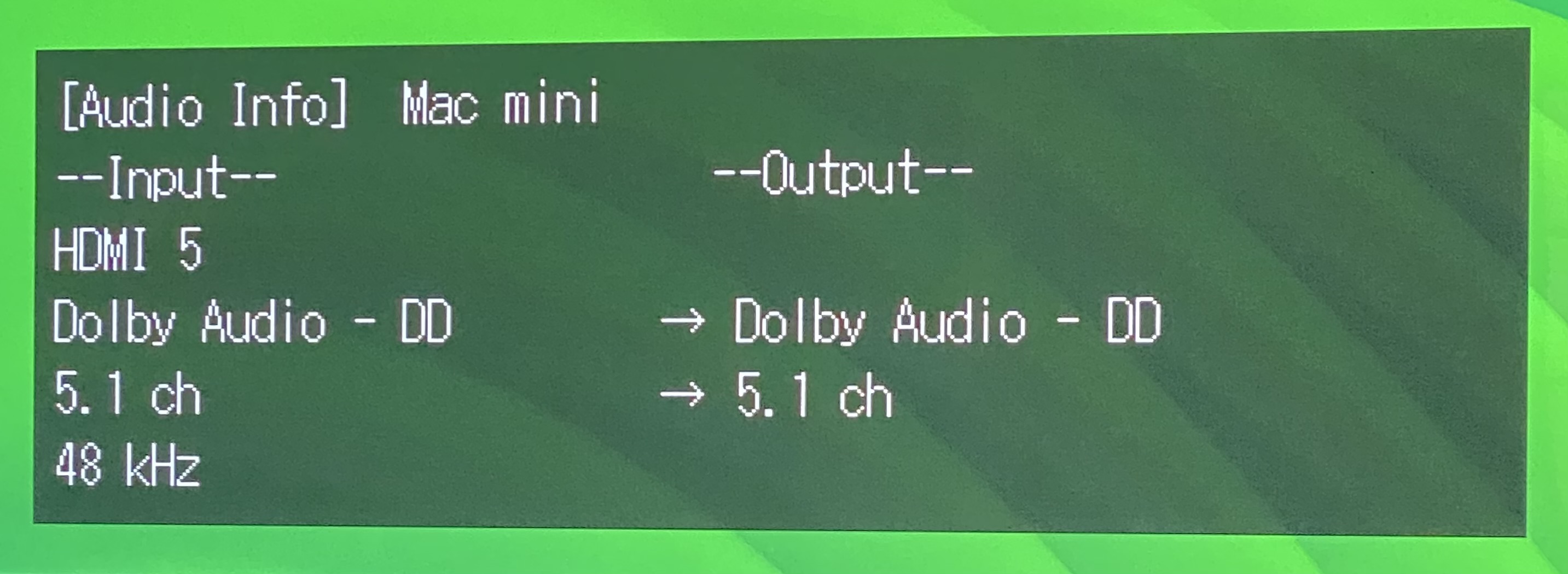As far as the display. it Is very clear with it's abbreviations to show what sound mode is active. It can't fit the entire word so abbreviations are needed. It also shows the HDMI input at the same time which is just as important.