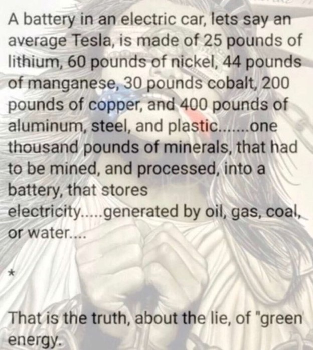 The gas is used by the vehicles that mined and carried the elements to the plant for processing into what we know as "batteries", We do the very same thing today for anything that is utilizing a battery. Saving the earth will not get in full swing until our manufacturing and production methods go totally green. Like you noted, nothing is truly green and I will add, it will never be truly green in our life time. Maybe our grand kids or their grand kids..