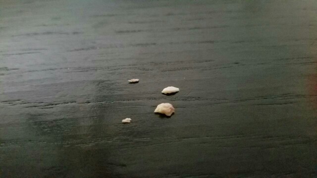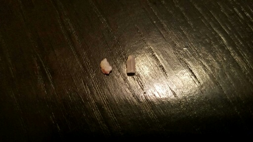 This is what I've picked out of my mouth so far. This isn't counting the 2 fragments my dentist and oral surgeon picked out as well.