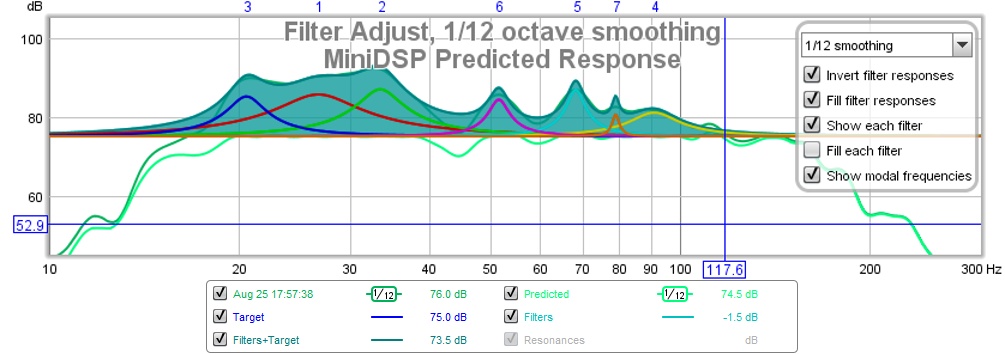 I used REW to generate the filters based on the raw sub sweep and uploaded the settings to the MiniDSP HD. By 1/24 octave, you mean the smoothing, right?