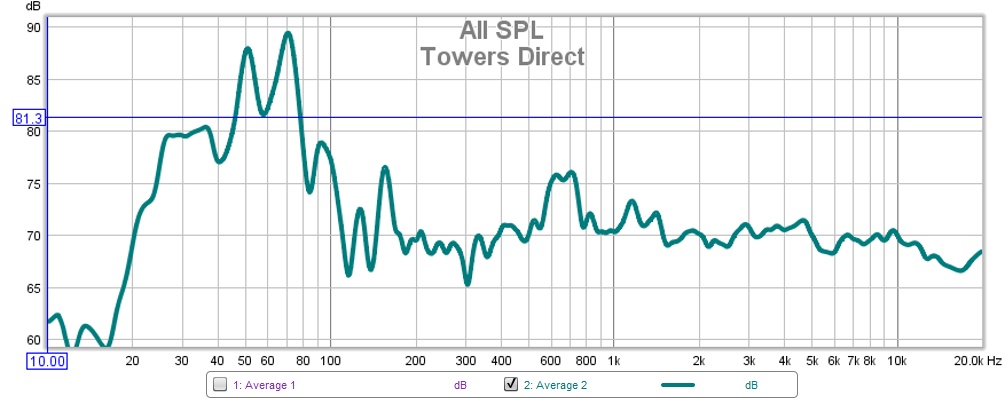 And here is where I have it set normally. I took this set of measurements with both ports open on my subs, EQ2 (More headroom mode) and the bump I like to give to the sub channel. I'm sure TLS would find it abominable... :p