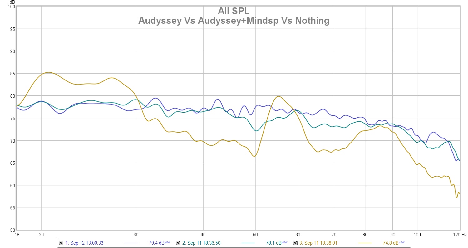 From what I can see so far, the minidsp 2XHD can definitely make the frequency response smoother but in terms +/- it cannot do better than Audyssey by more than 1 dB, though I have not try re-running Audyssey.