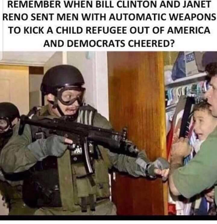 Wasn't it the courts - not Clinton and/or Reno - who made the final decision that Elián González should be returned to his father, as it was essentially a child custody question? Not sure what that has to with the situation at the US/Mexico border. And, the cheering democrats are probably just as real as the cheering Muslims in New Jersey when the world trade centre fell.