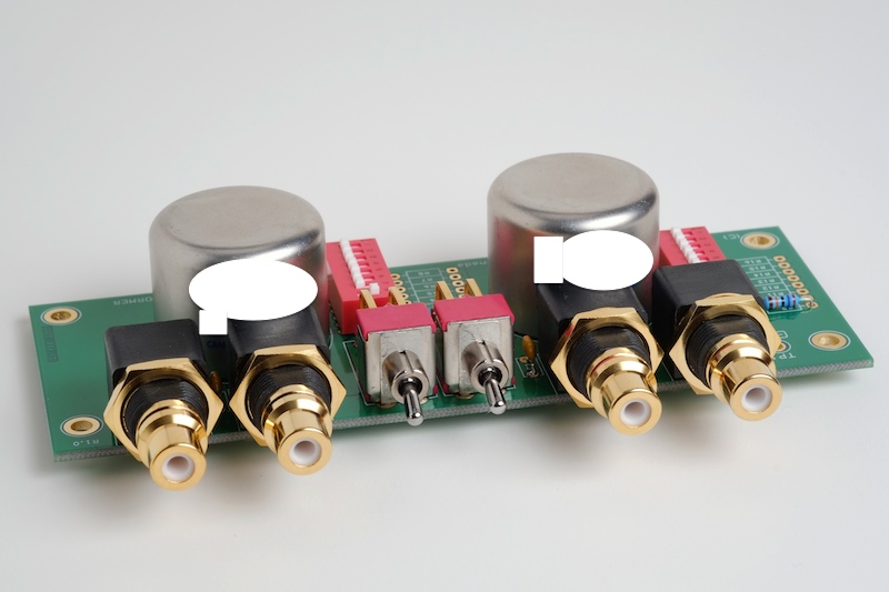 The switches select two different gain ratios, to match the SUT with various cartridges. There are two because the unit is fully dual-mono ... a significant effort was made in layout to minimize crosstalk between channels. (That is why the switches / resistors are not symmetrically laid out on the PCB ... the signal paths for each channel are exactly equal length and trace widths).