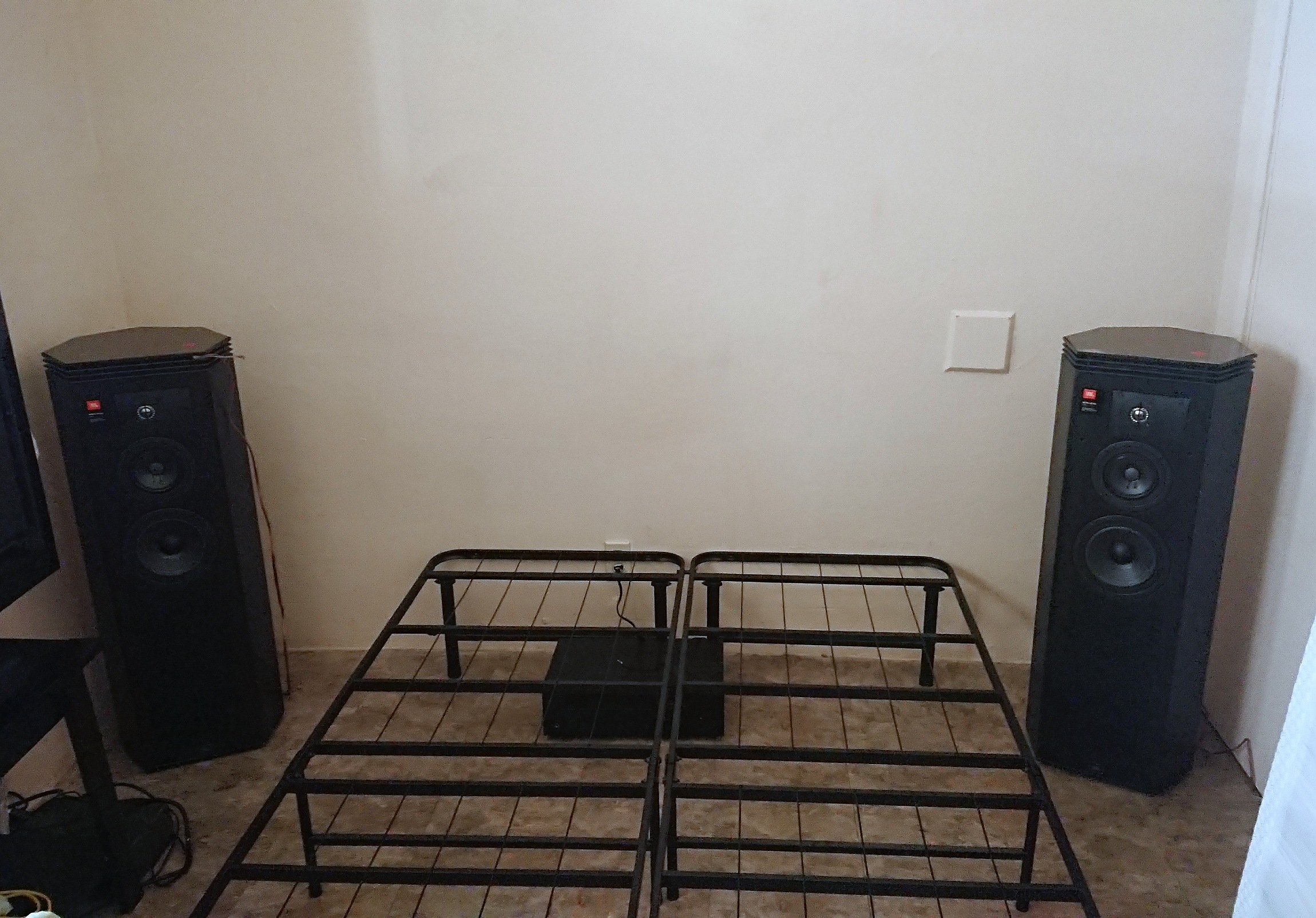 Hey, that looks like it could work pretty good! Okay, I change my stance. I think they're gonna work pretty nice in there. Your pics convinced me. Hopefully you spend some time in there so you can enjoy them. If you're like me, you'll find reasons to be in the bedroom more often, lol. They won't be off or wonky because they're equal distances from room boundaries, and I think the top ported design would be a plus for corner placement. You have those switches on the bottom to attenuate the bass too, if they get boomy. That's pretty cool. Congrats again on the score!