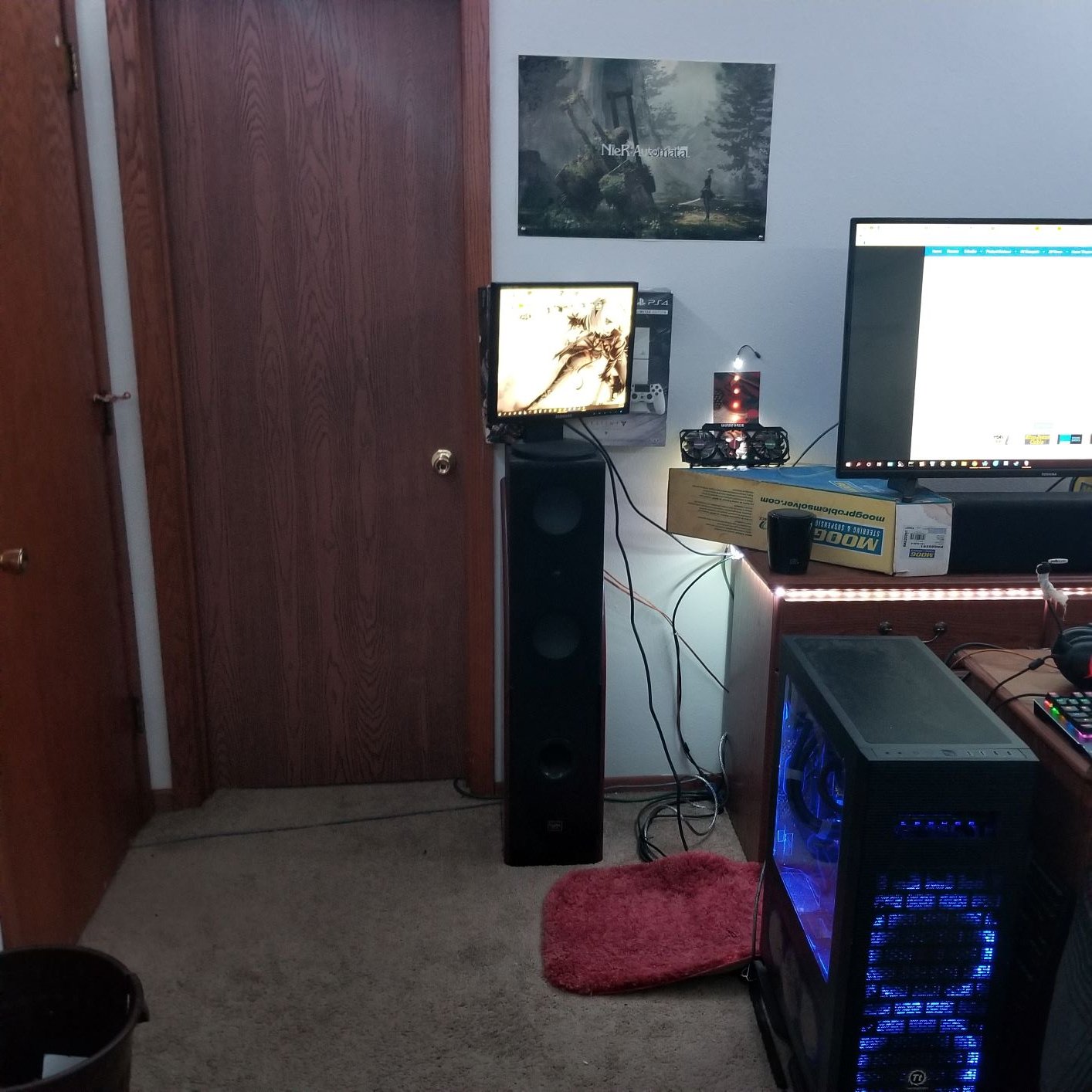 The tweeter height of your present speakers look to be very low compared to the listening position, at lest from what i can make of the pictures.