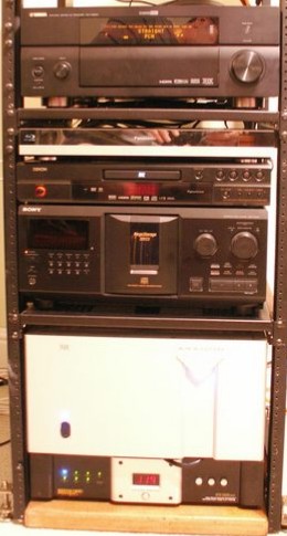 That switch at the top of the rack turns on the TT's power. The TT's motor vibrates if it's plugged into power. It's weird but the switch puts an end to that and the rest of that 2U power strip is plugged into a switched outlet on the Monster so when the rec'r goes off, everything goes off. This level of automation is about all I can deal with until my iPhone learns to flip the record.