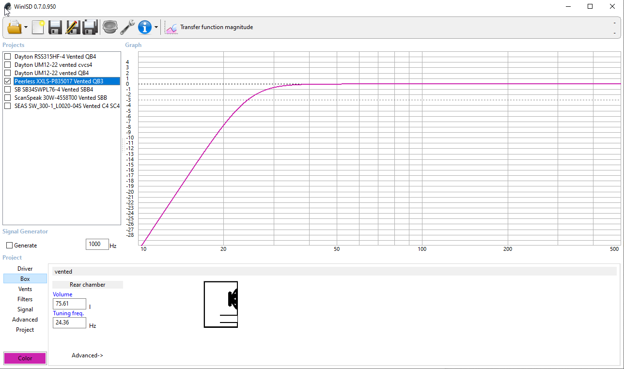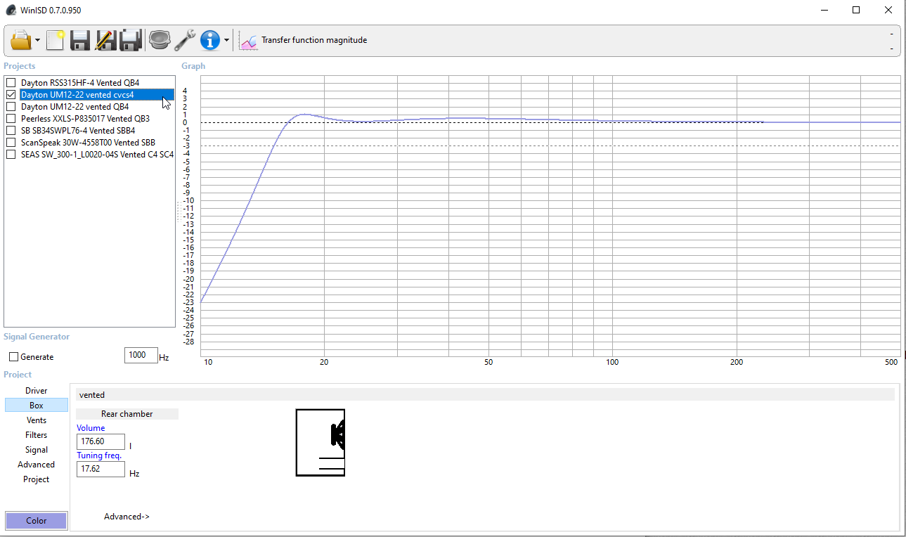 Evidently WinISD and Bassbox Pro don't agree with one another about recommendations, whether this is because of incorrect driver specs or some other variable I don't know yet.