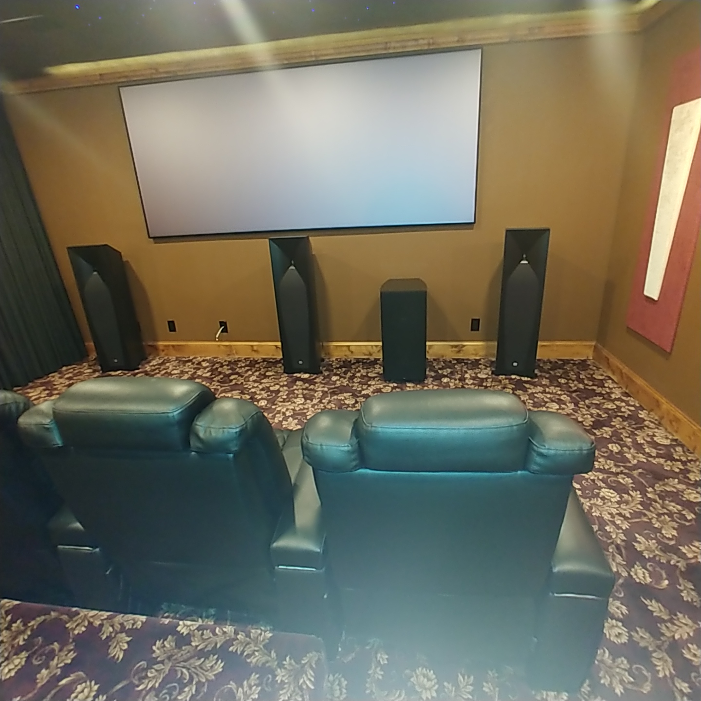 My mom's an artist and is really good a painter so I'm not surprised in a way that she wanted those she loves aesthetics which is why I went with all the wood trim and colors instead of just a blacked out room