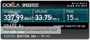 With standard fiber I could get a max of 50 Mbps. That is not enough when the grandchildren are here. I needed 100 Mbps, but that was not on offer. So I went on the Gigazone which gave me 250 Mbps up and down. Since sorting out my cabling it has delivered those speeds consistently. Cost is $72 per month.