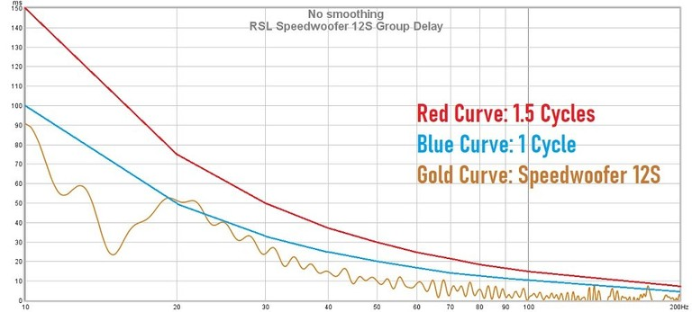 GD crosses 1 cycle, and it's over 50 ms at 20 Hz, good subs keep GD under 20-25 ms flat. I mean it's not horrible, but hardly "speedwoofer", I understand this is a marketing name, but still...