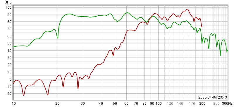 Yes, the new room is bigger, and it has some openings, so I expect the output to be lower. But this? So I measured the subwoofers near field, and I got the same results: the low-end is completely gone, just like in the graph above. I've checked the miniDSP plugin and all filters etc. are bypassed. The crossover in the AVR is jacked up to 250 Hz, Audyssey is turned off. I've made sure that each of the subs are outputting 75 dB at the MLP when playing pink noise in REW. So what the heck is going on? Is there a setting I've missed? Is there something wrong in the signal path?