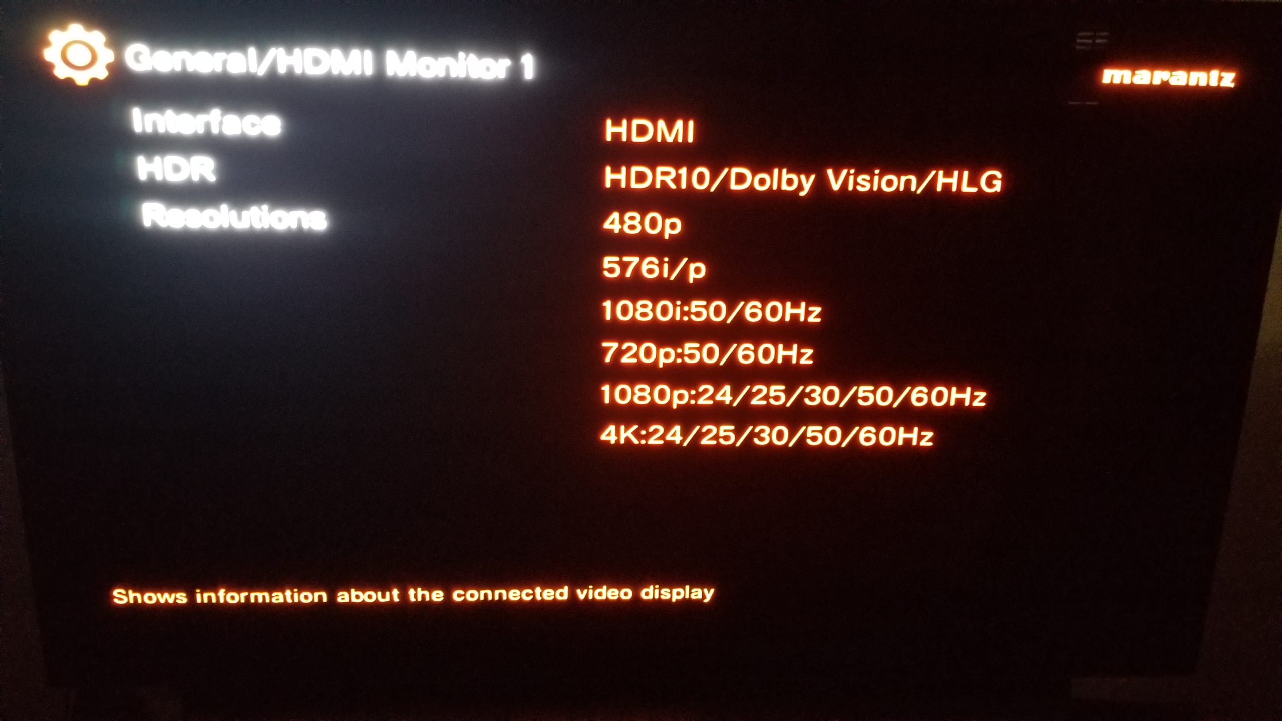 On the Marantz Denon, 1st the text turns orange so I know I'm in full 4k mode. But also on these pages this is what you should see.