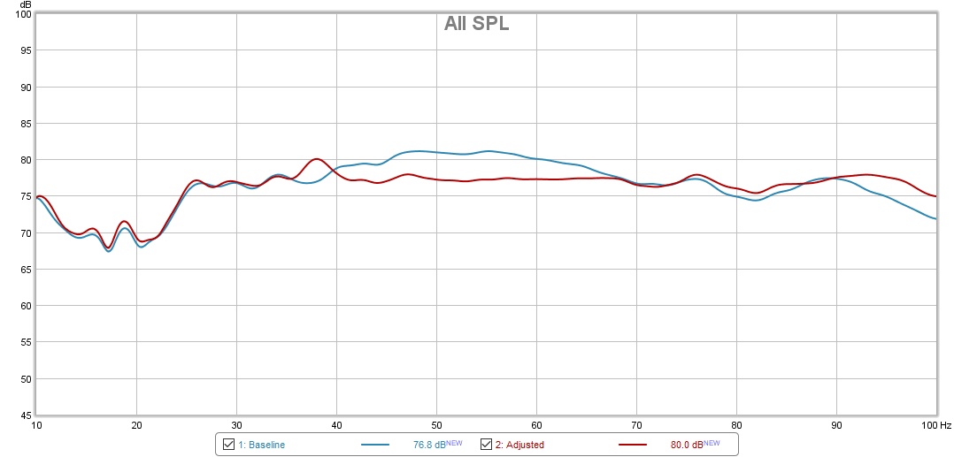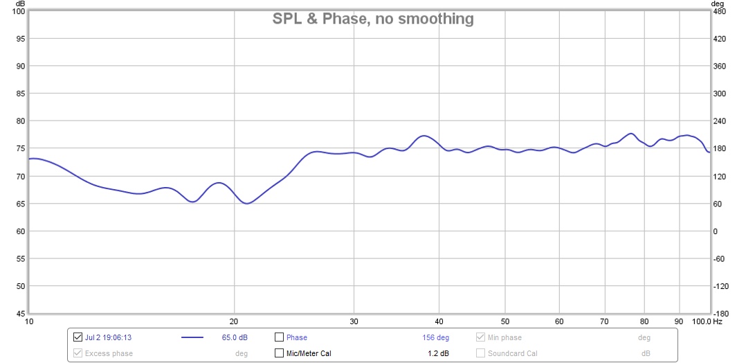 I agree. Just going to have to forget about below 25hz for now. It's interesting that targeting 78 dB got me very close to the 75 dB goal.