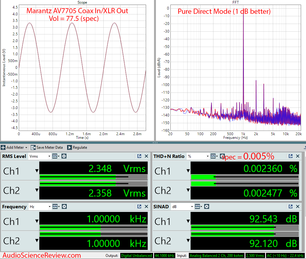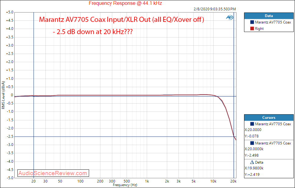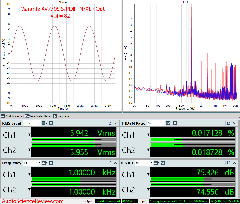 Again, it was at 2 V unbalanced so it should be compared to the AV7705's 4V balanced/XLR: