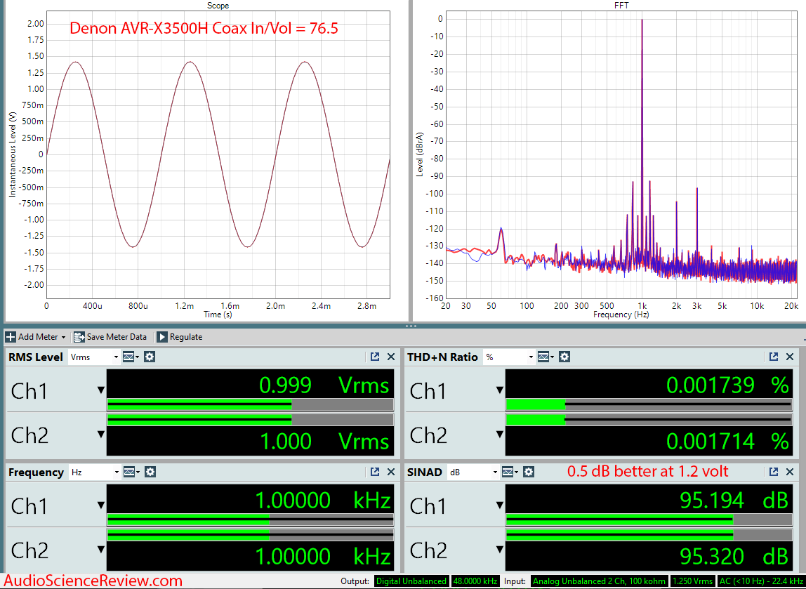 At the rated 1.2 V, things improved for both the AV7705 and AVR-X3500H: