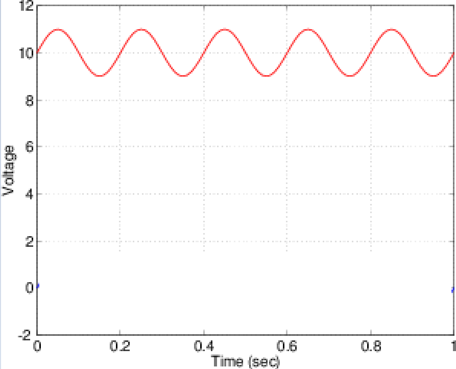 With the battery, voltage is offset above the zero voltage level, never crossing it.