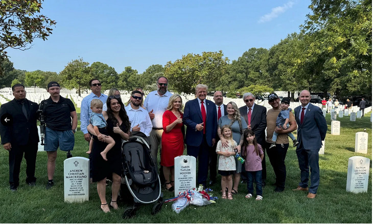Why do you think one should not be respectful when visiting a cemetery, follow the rules and show proper decorum? I don't take cheesy photos of myself smiling with thumbs up over a grave over someone killed in the line of duty, all for craven political reasons. All of this speaks to Trump's, as well as his election campaign team, lack of moral character. Republicans used to, at least nominally, care about "moral character".