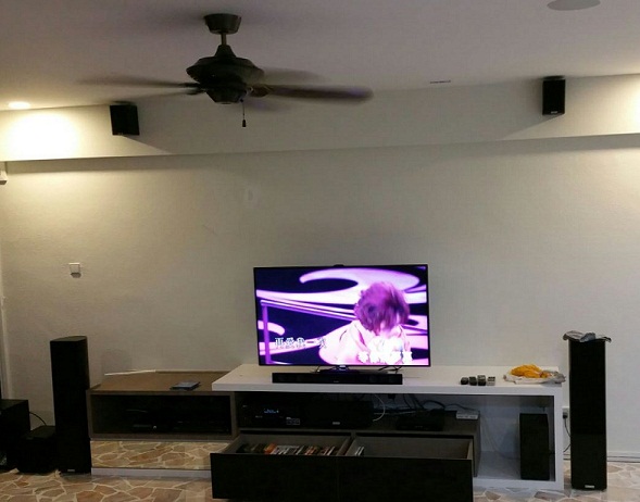 Pre-wires room for 5.1 setup (two front, one sub and two rear (rear wall to ceiling corner points).