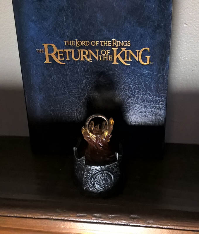 More junk....Han Solo Blaster to add to Star Wars poster area and a Jurassic Park mosquito in amber paper weight and James Bond "Spectre" ring for the half bathroom shelf....