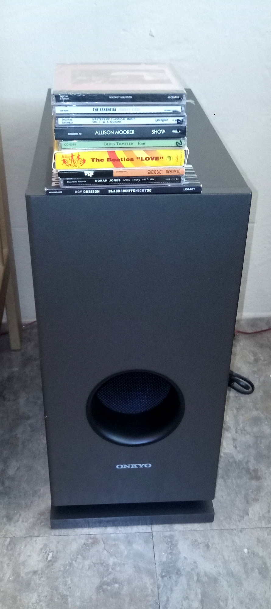 All bought used. Onkyo sub(8 inch 120w) was $18. I read they are decent subs. It has a mesh in the hole, so no dust will get inside. Nice touch Onkyo.