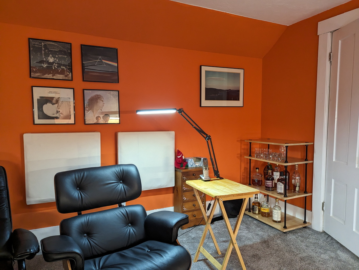 You can never ever have a fire with that speaker there. I can tell that you don't have like a regular wood burning thing happening but I mean never. Ken and I would cry.