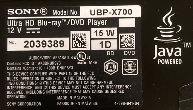 I have the Sony UBP-X700, which works great, so you have a good one here. I was surprised at your comment that it's Region Free so I went looking in regards to mine. (Canada /USA Model)