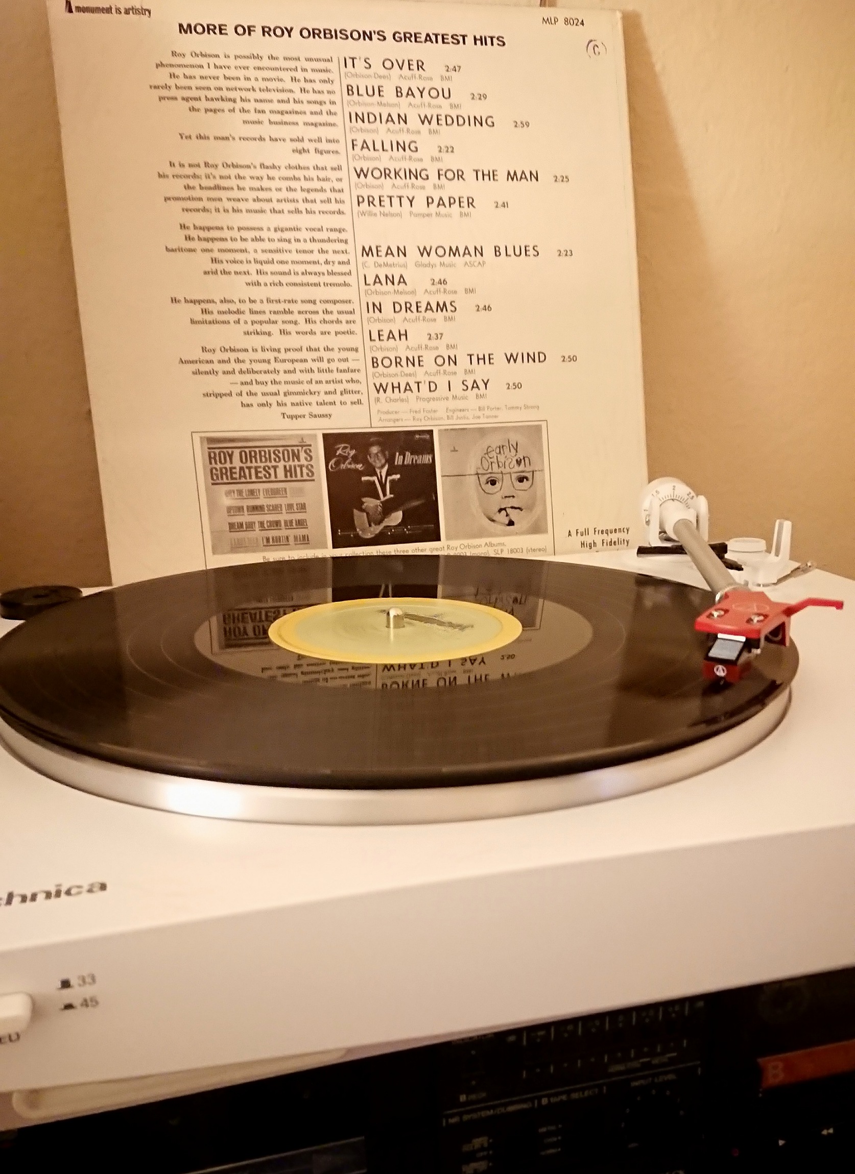 From big haul today! So cool to have Orbison on vinyl. It's great selection of songs, so I'm thrilled. RIP Orbison. Pretty paper is Written by Willie Nelson. A- condition!