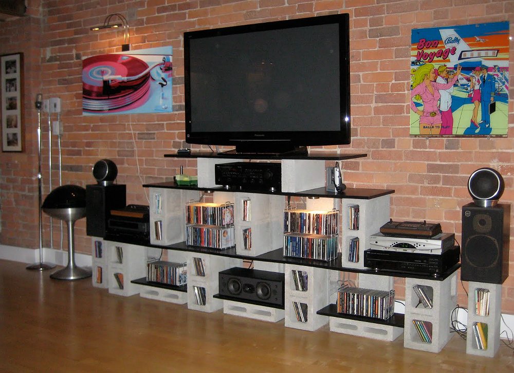 But yeah, this room has been tough. Basically those two openings you see open up into the rest of the house. To the left (before the opening) is just another wall. So you think I wouldn't be able to place towers directly under the two corners of the TV? What about bookshelfs... same problem?